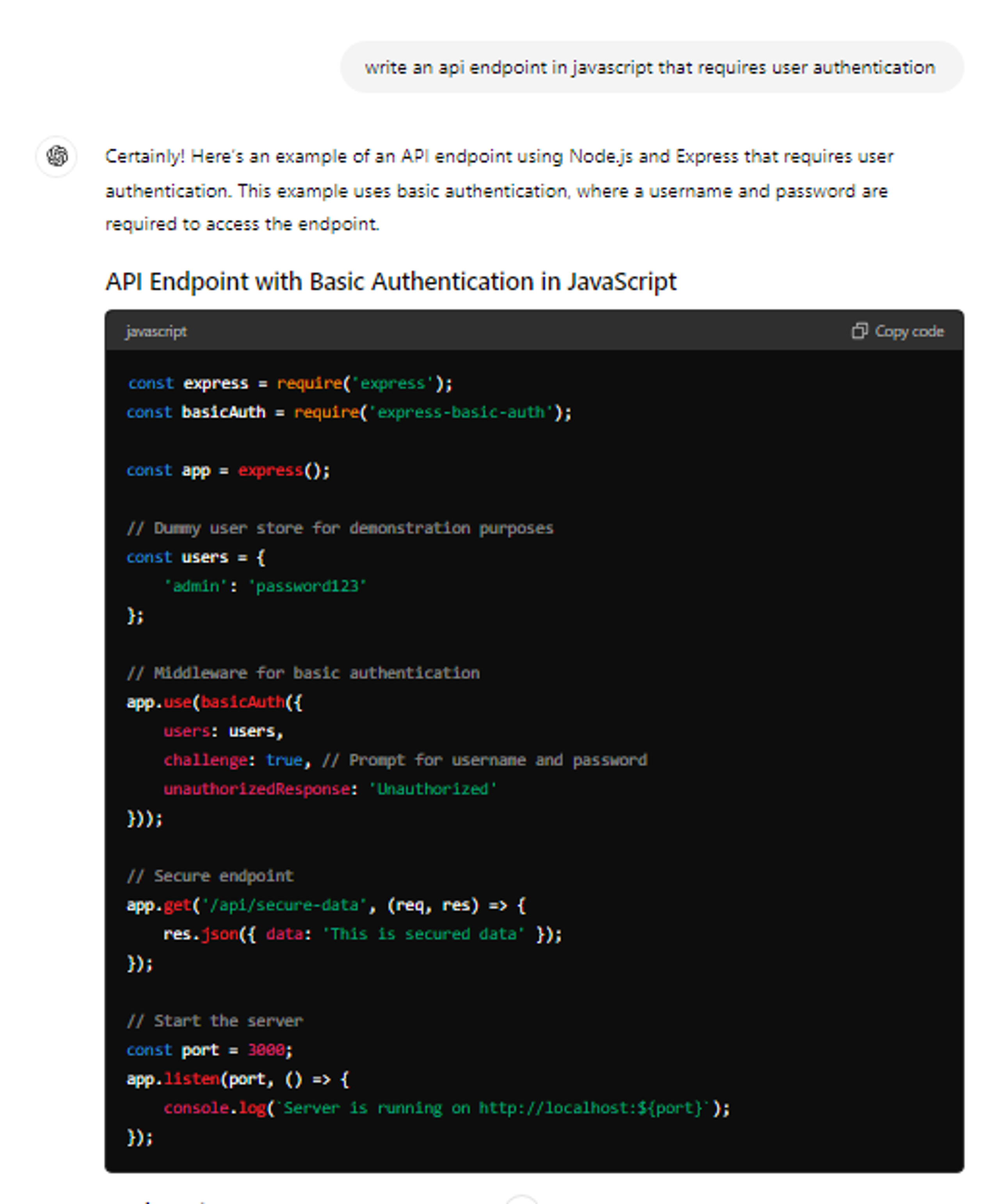 ChatGPT can accelerate software development by generating API endpoints in different programming languages.