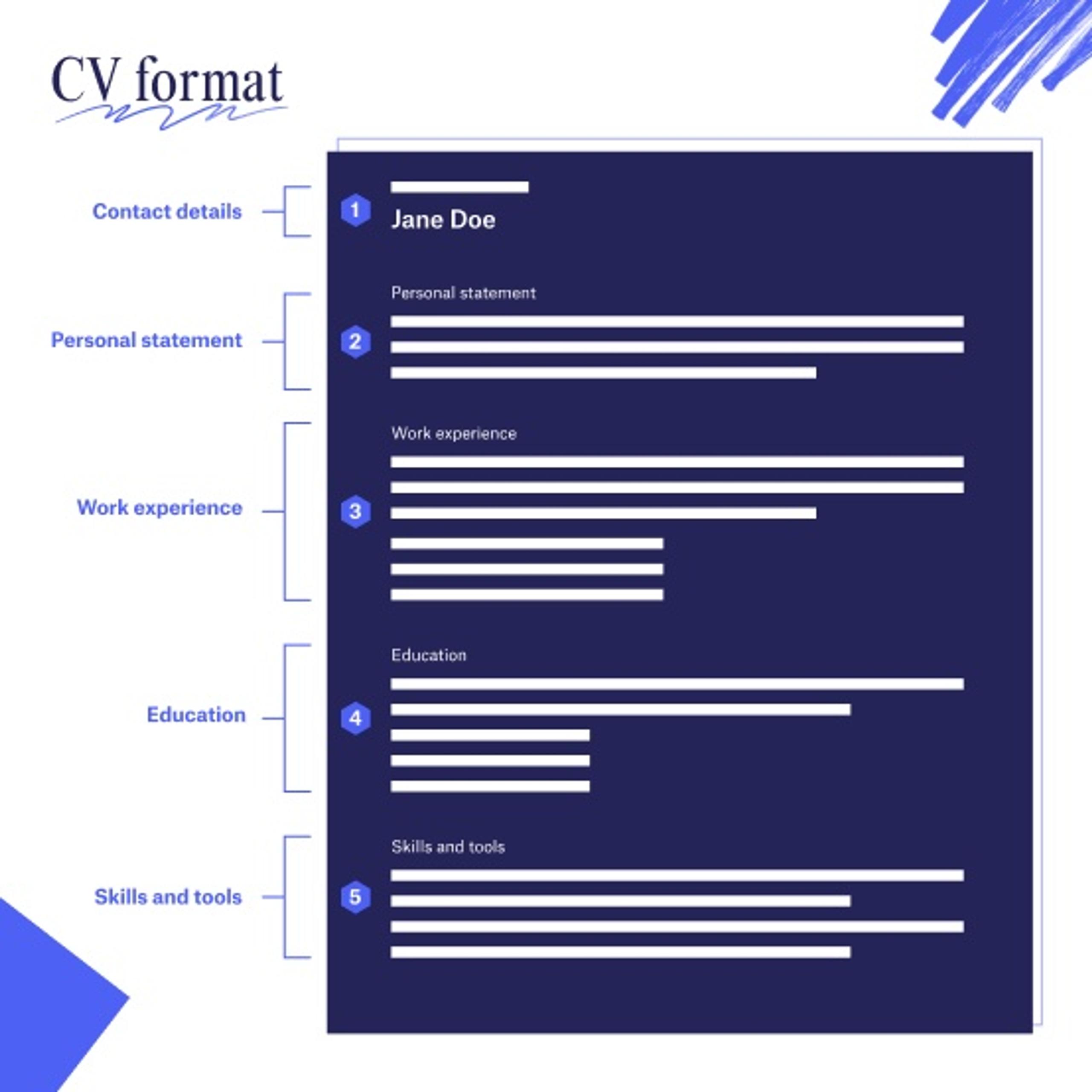 UK recruiters get around 250 CVs for every job advertised—and five to seven seconds(opens new window) reviewing each submission. By following the CV format below, you’ll give yourself the best chance of passing the ‘seven-second test’.