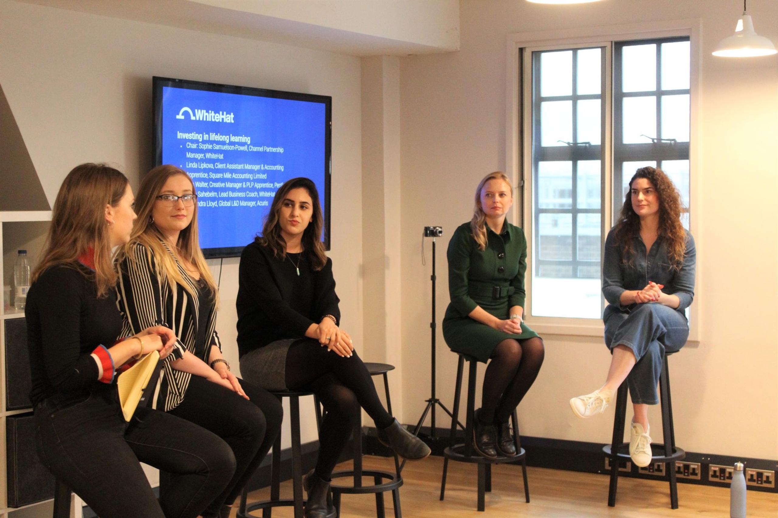 The first panel of the morning,‘Investing in Lifelong Learning', was chaired by Sophie Samuelson-Powell, Channel Partnership Manager, Multiverse and she was joined by Alexandra Lloyd, Global L&D Manager at Acuris and Neda Sahebelm, Lead Business Coach at Multiverse as well as two Multiverse apprentices, Linda Lipkova and Kim Walter.