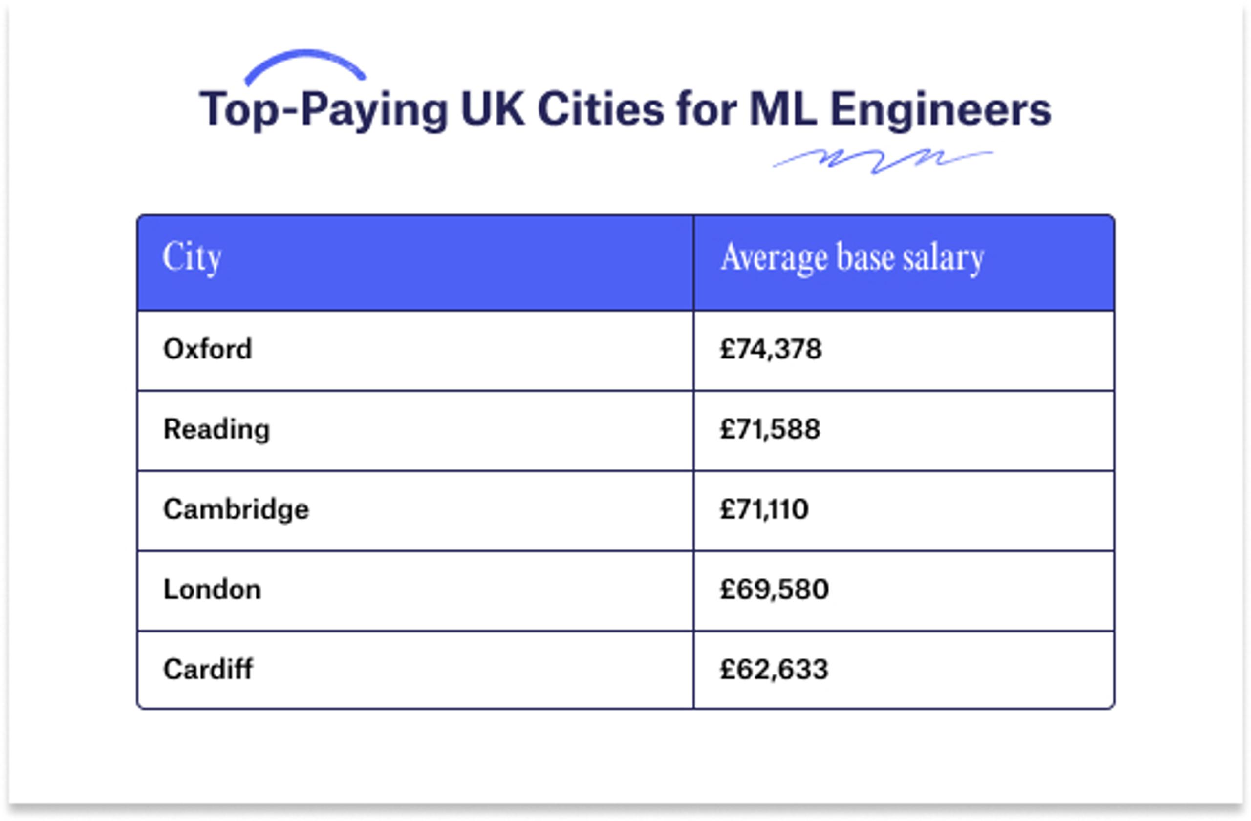 Here’s a breakdown of the UK's top-paying cities for Machine Learning Engineers.