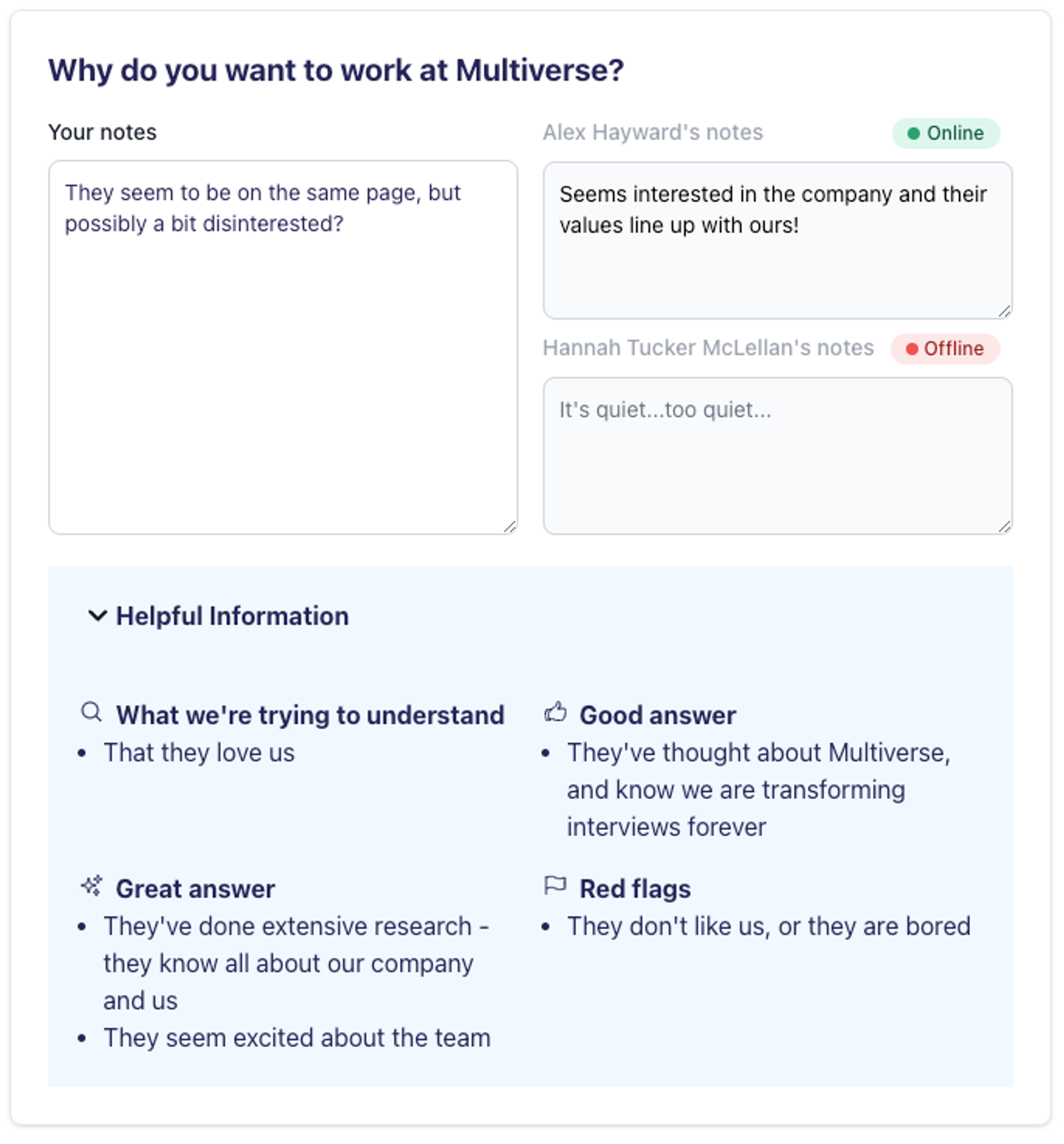 A clean interviewing UI that allows multiple users to collaborate in real-time