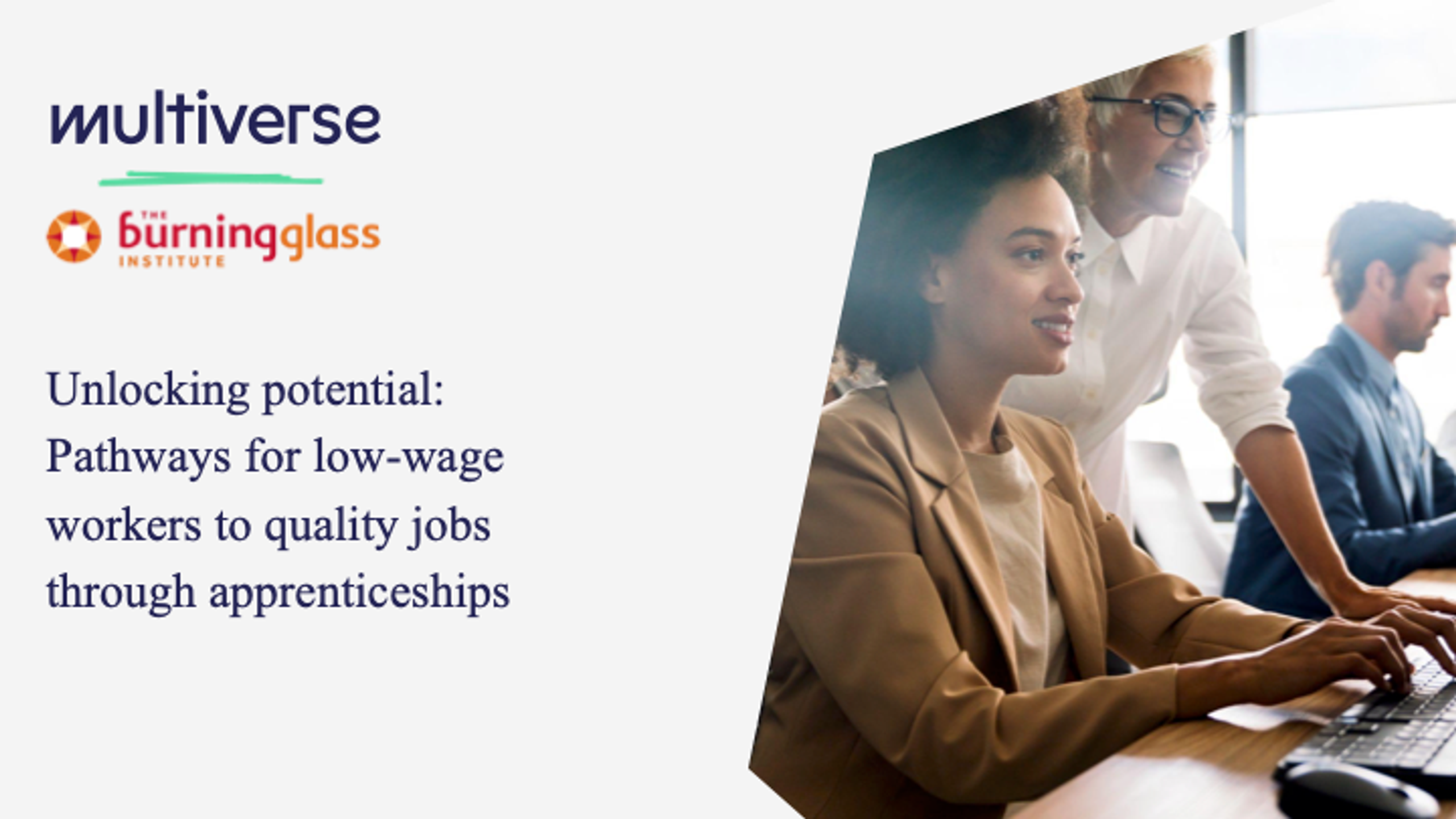 Our new report, Unlocking potential: Pathways for low-wage workers to quality jobs through apprenticeships(opens new window), created in partnership with the Burning Glass Institute, covers just this – how organisations and workers impacted by these shifts can develop new talent and jumpstart new careers. The research, which is the first in an ongoing series, explores the effects of emerging technologies on the world of work, and the potential of new education and training models to mitigate the impact of technological change.