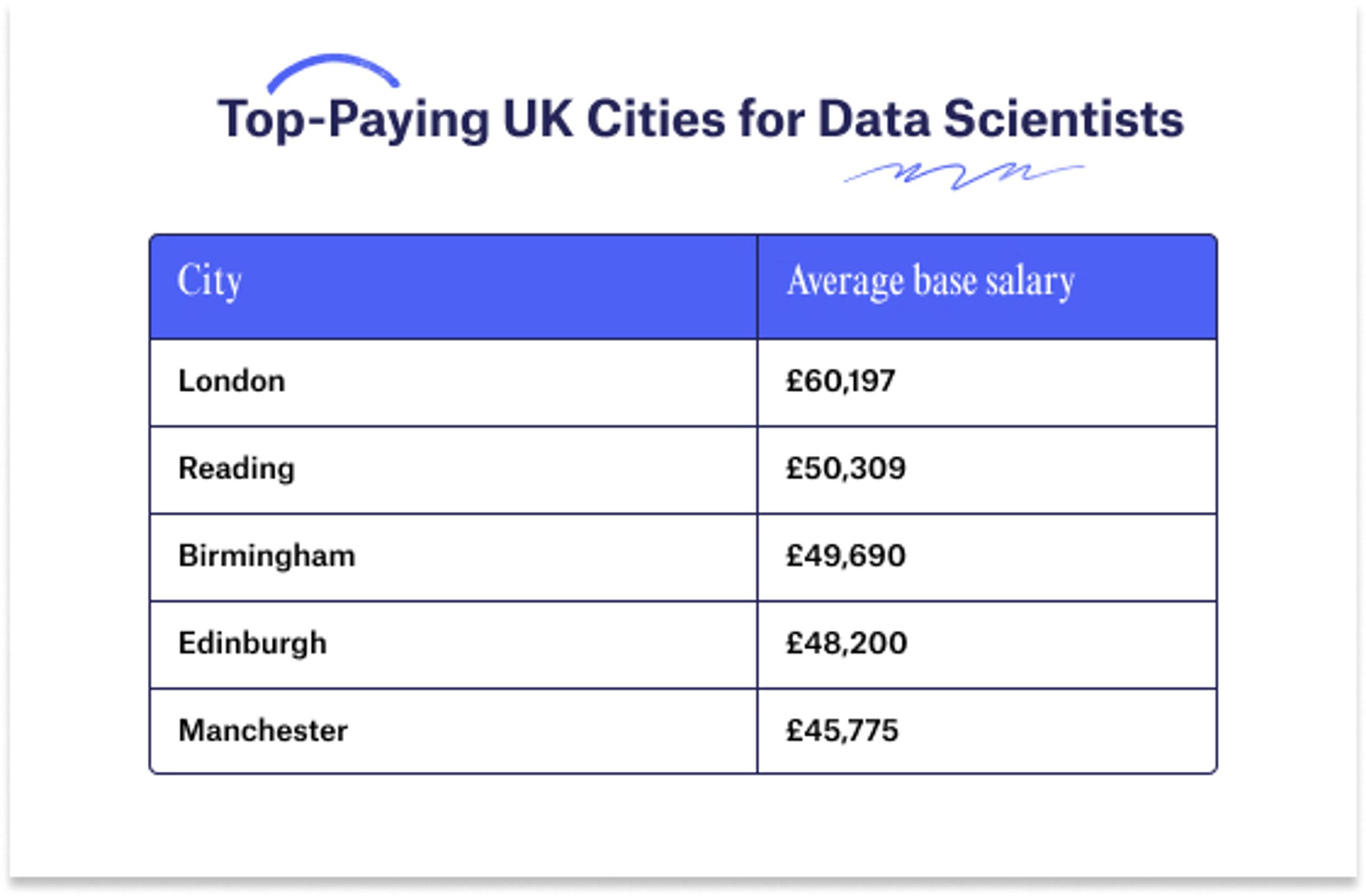 Here’s a breakdown of the UK's top-paying cities for Data Scientists.