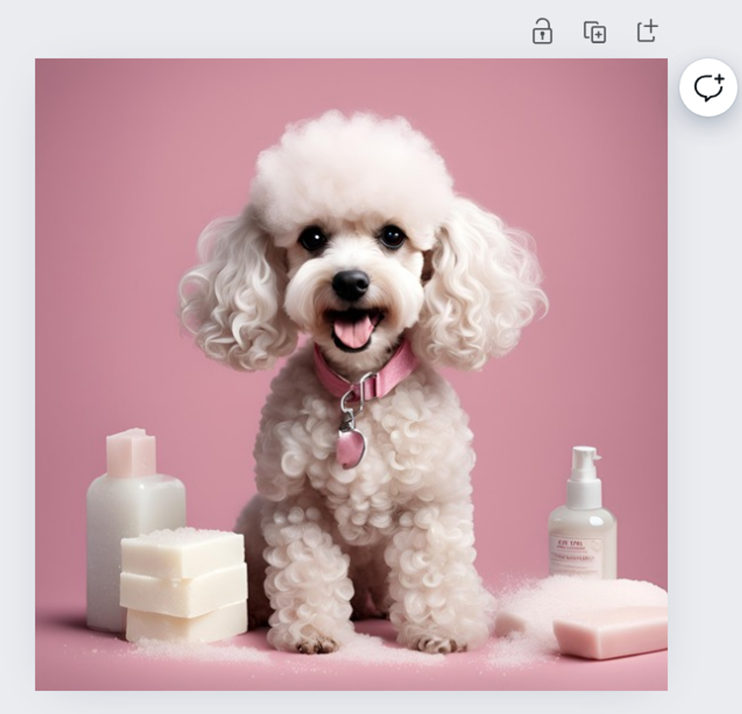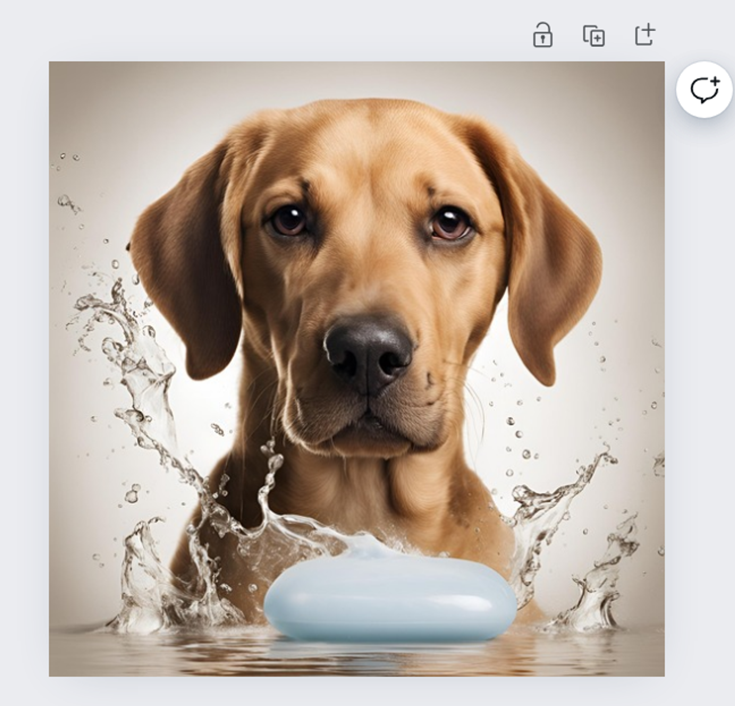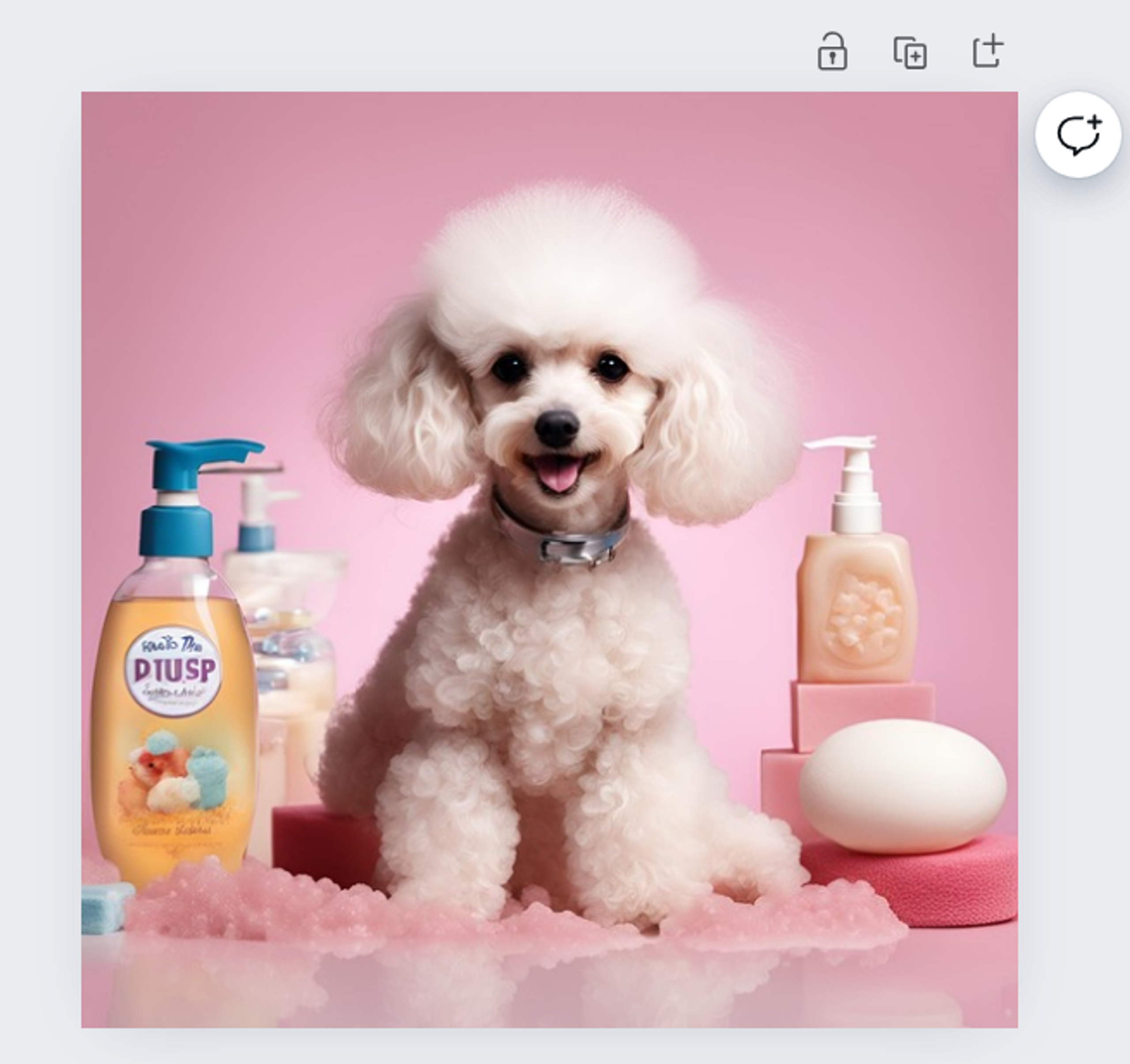 Say you want to create an image of a cute dog with soap for your company’s marketing materials. Let’s start with a basic prompt: “Create an image of a dog with soap.” Magic Media generates this image: